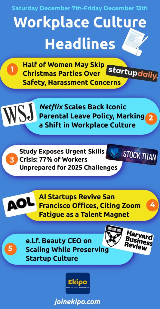 1️⃣ Women and Workplace Parties 🎄 — Nearly half of women are reconsidering attending office Christmas parties due to safety and harassment concerns.
