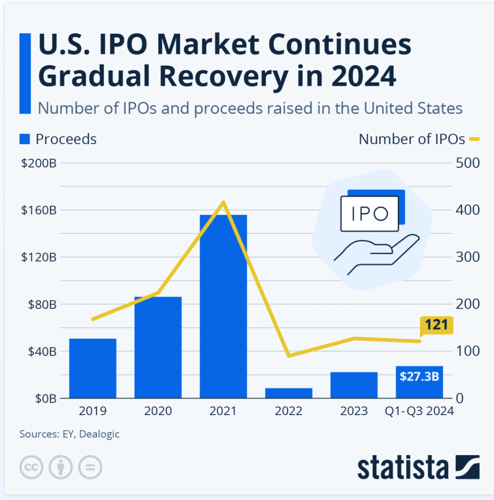 That timeline has become even more critical as IPO activity has slowed significantly in recent years (see graph below), with the last three years seeing an especially pronounced decline.