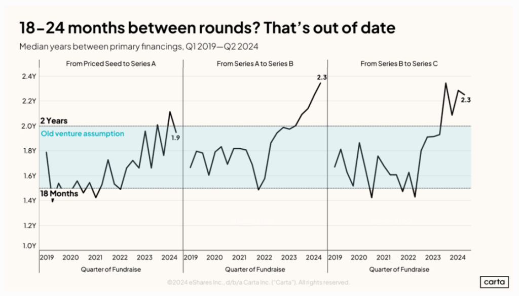With venture capital funding tightening over recent years, successful startups are increasingly embracing creative cost-cutting and “seed-strapping” strategies to navigate the challenging VC landscape. This financial reality is pushing companies to extend their runway targets from the traditional 12-18 months to a more conservative shift to 18-24 months .