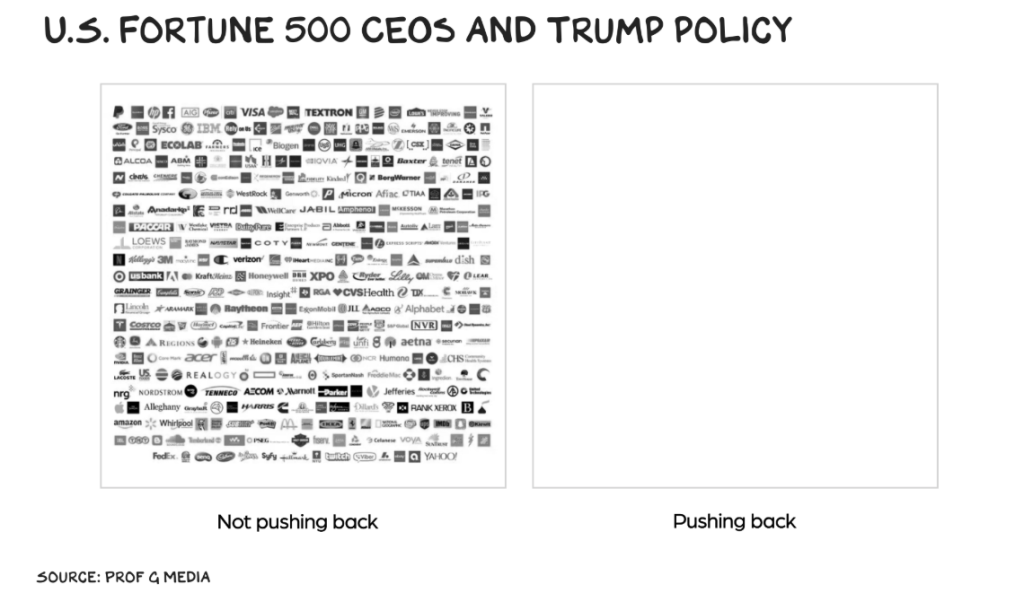 Scott Galloway had a similar take back in April for the lack of pushback from Fortune 500 CEOs when he said: